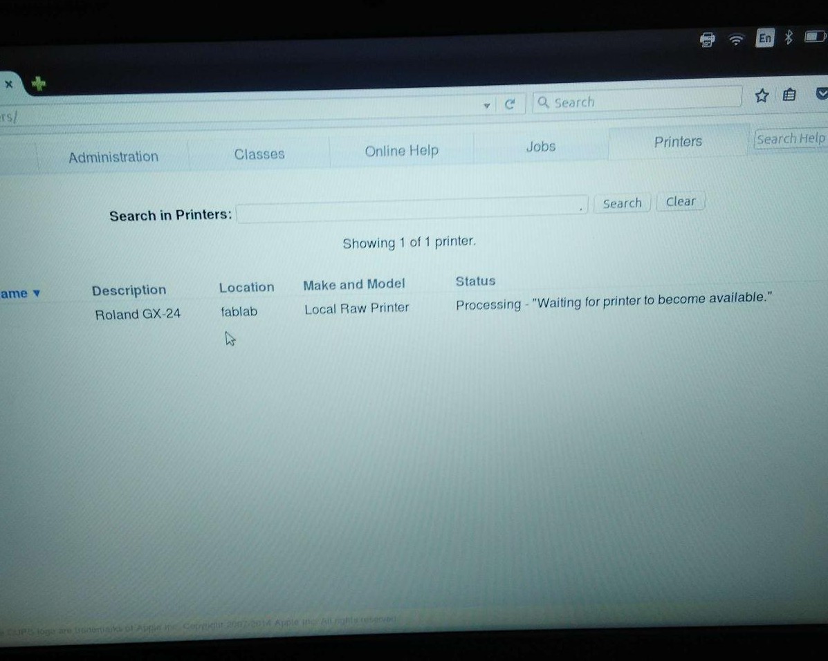 Connect the vinyl cutter to the computer and open http://localhost:631/ in web browser to access the CUPS.